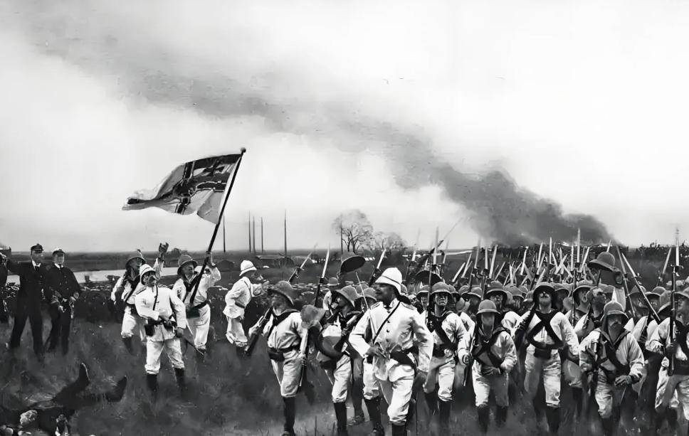 再往后,日本明治维新后尾巴翘天上,1894年甲午海战,黄海里舰队对轰,中国北洋水师折戟,1895年马关条约赔了两亿三千万两银子,台湾还得拱手让人。转眼1900年,义和团事闹大,八国联军——英法德美日俄意奥匈,搁天津大沽口登陆,直扑北京。