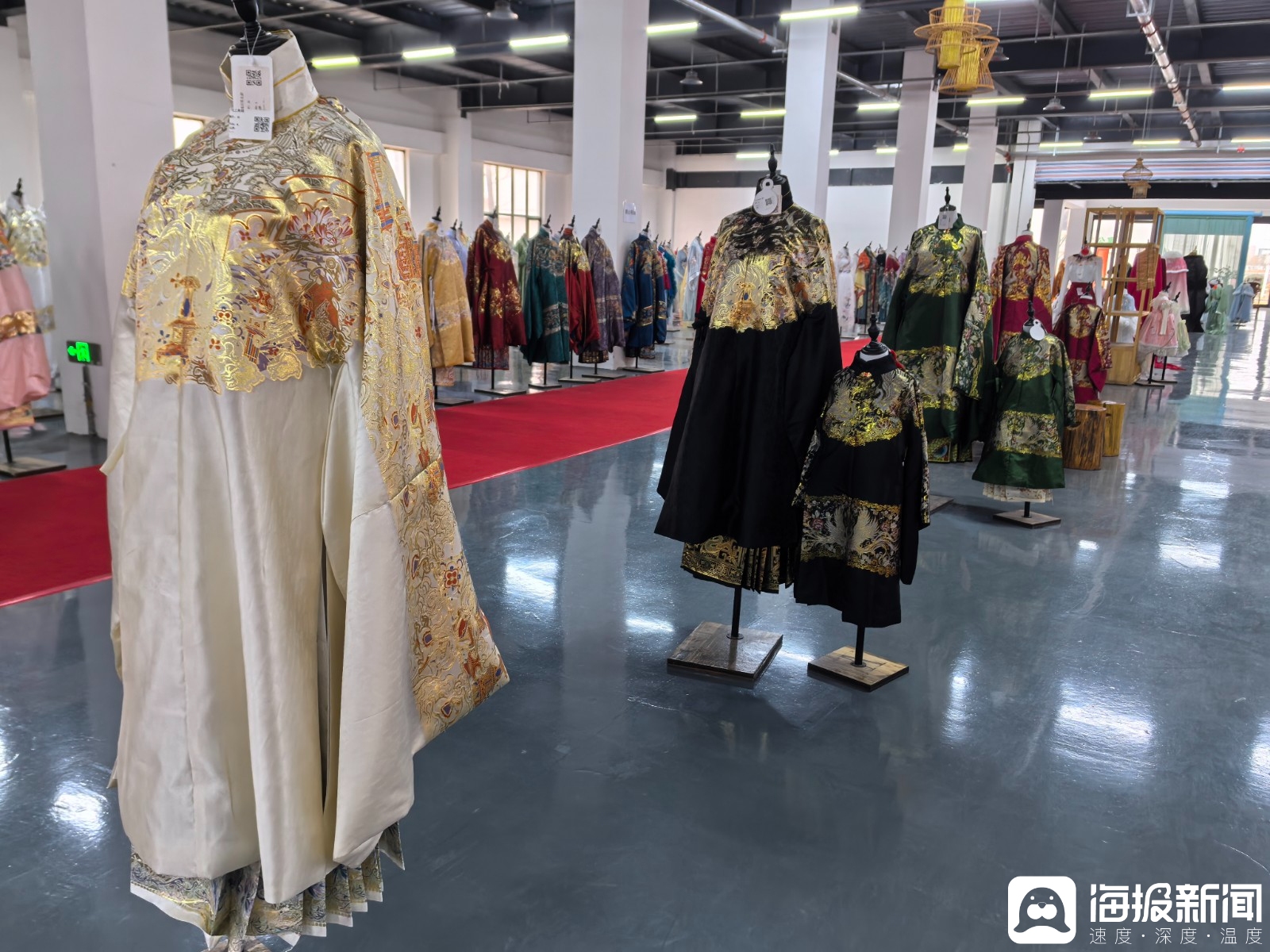立春刚过,北方的寒风仍有些刺骨。在山东曹县,有爱汉服基地的生产车间里却是一片火热。