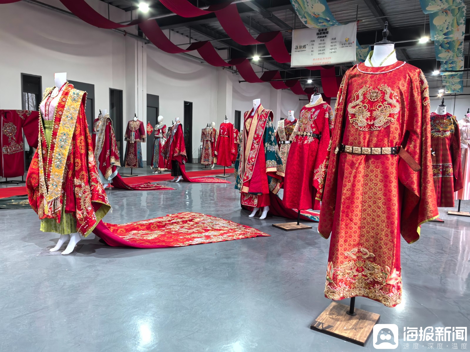 我左边的小伙伴是一条马面裙,裙摆上织着千里江山图,要被发往北京;我对面那件明制披风要去西安,在长安霓裳里等人试穿。还有很多伙伴要被送到浙江横店、河南郑州的影视基地——很快,你们就能在那一部部爆火的短剧中见到他们。还有一些小伙伴,已经在昨天深夜被从洛阳、开封来的景区工作人员开车拉走了。